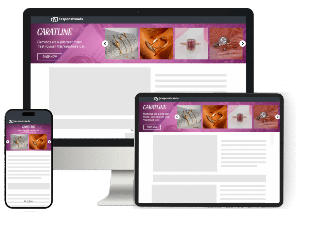 Fluid and Responsive across all screens with an added benefit – Shop right within the ad. Add to cart has never been easier. Brand products can receive the spotlight you want them to.